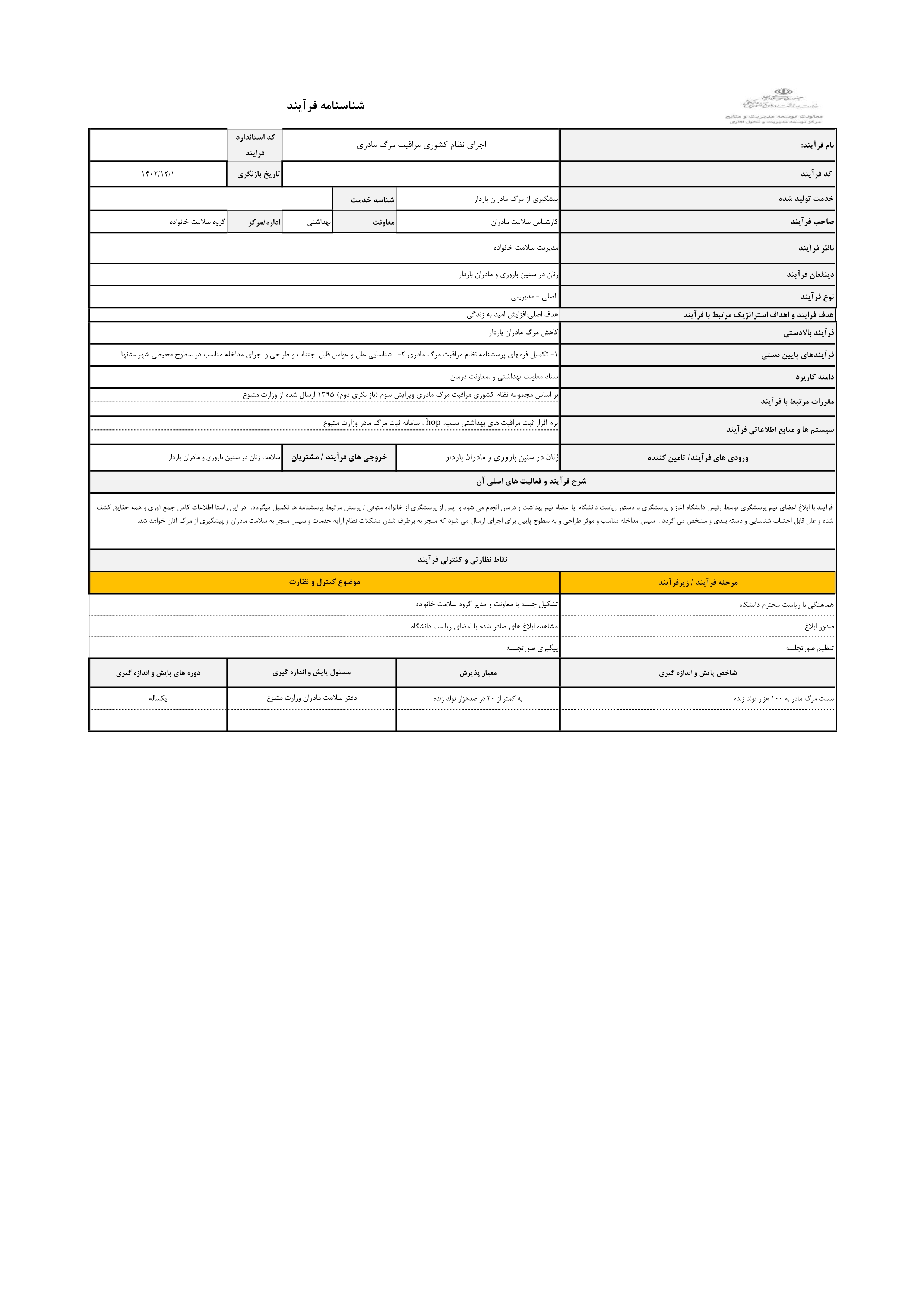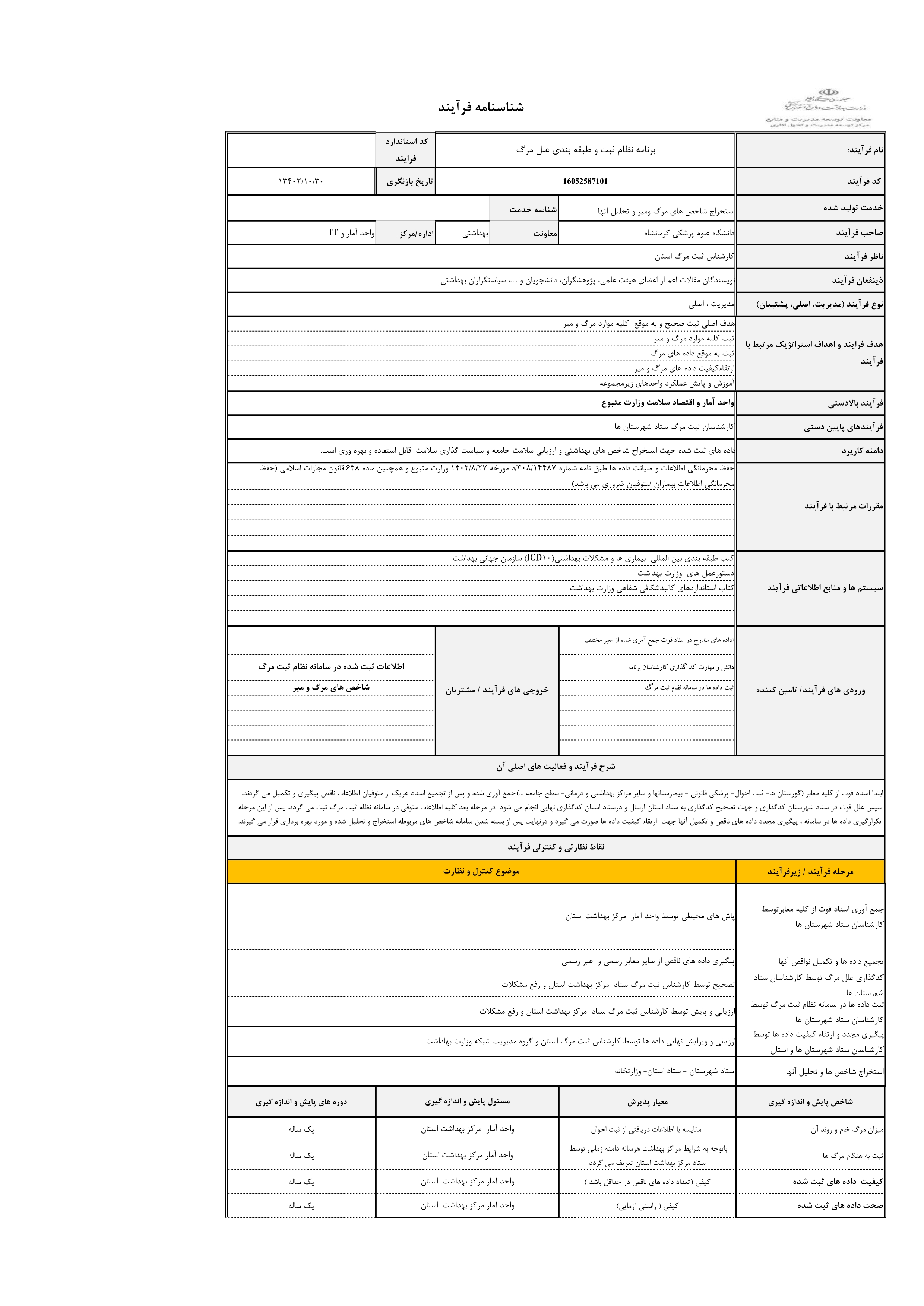 فرآیند برنامه نظام ثبت و طبقه بندی علل مرگ