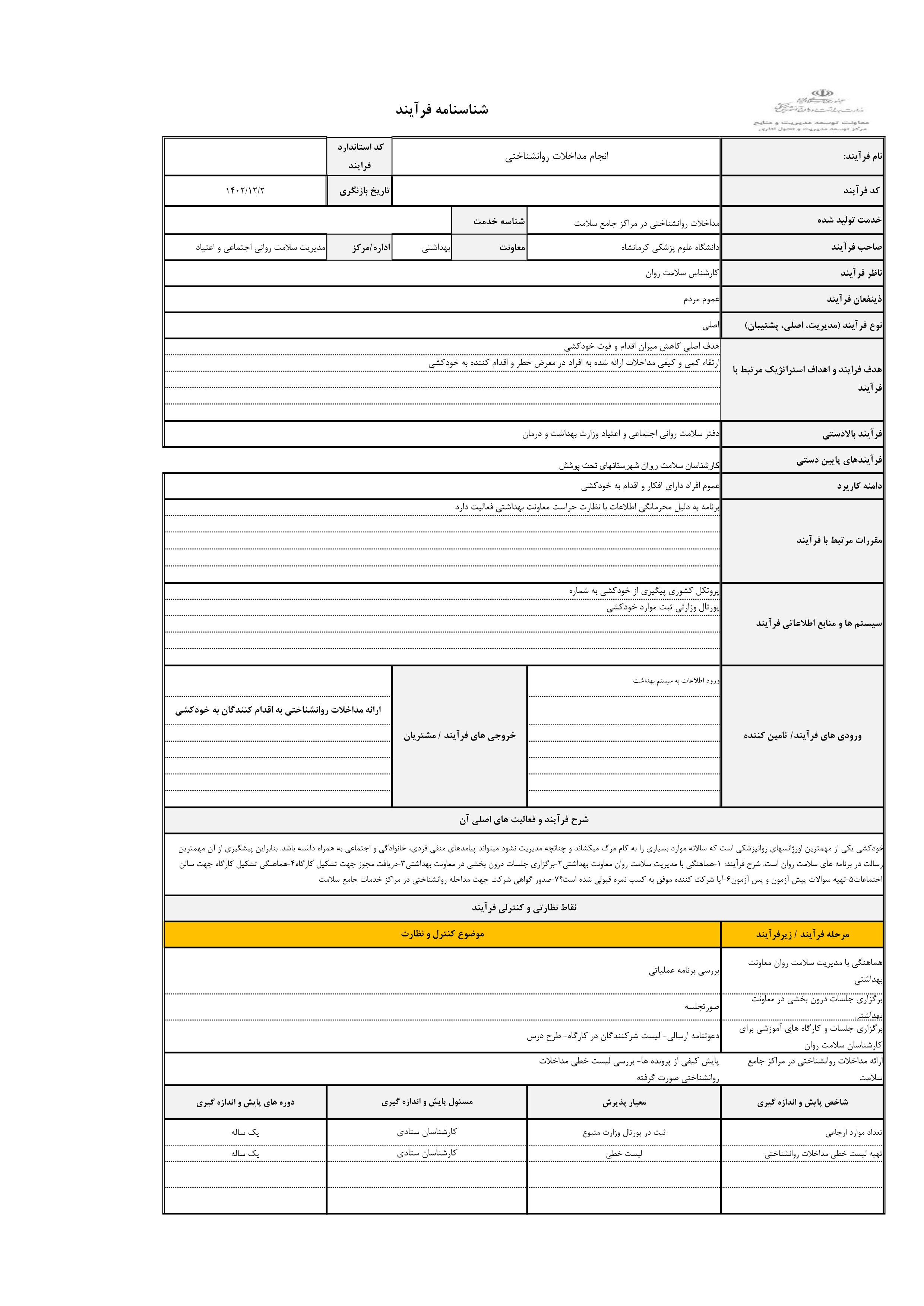 برنامه عملیاتی مراکزمشاوره بیماریهای رفتاری استان کرمانشاه
