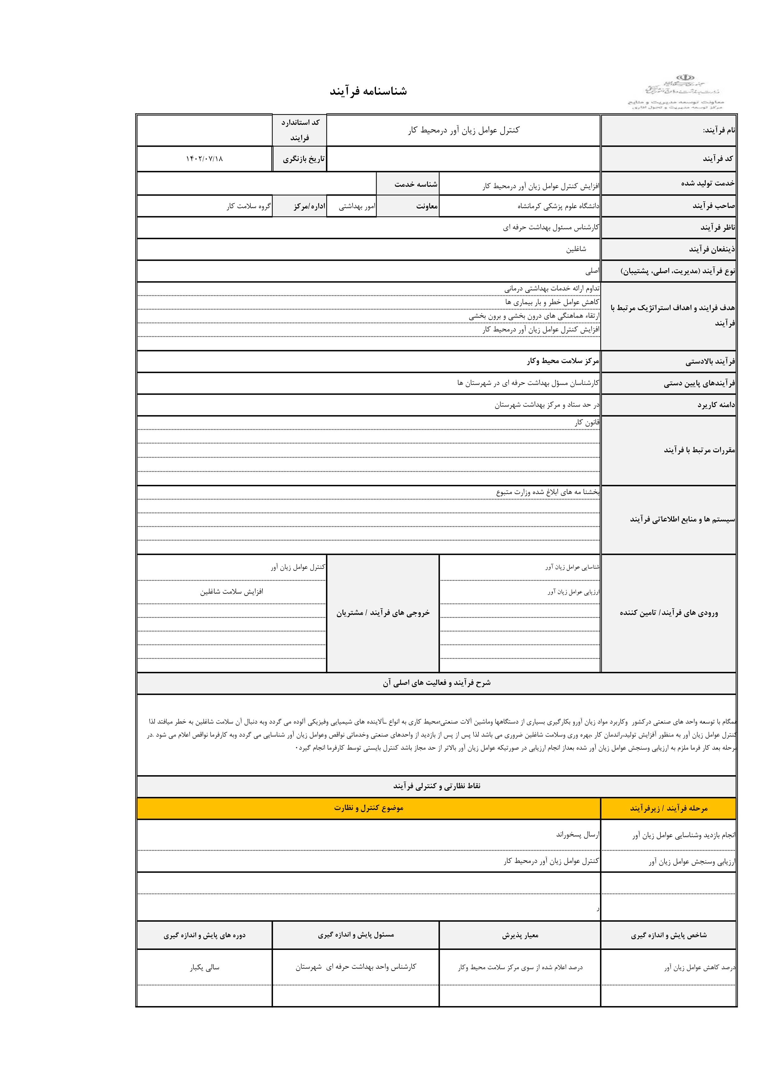 فرآیند کنترل عوامل زیان آور در محیط کار