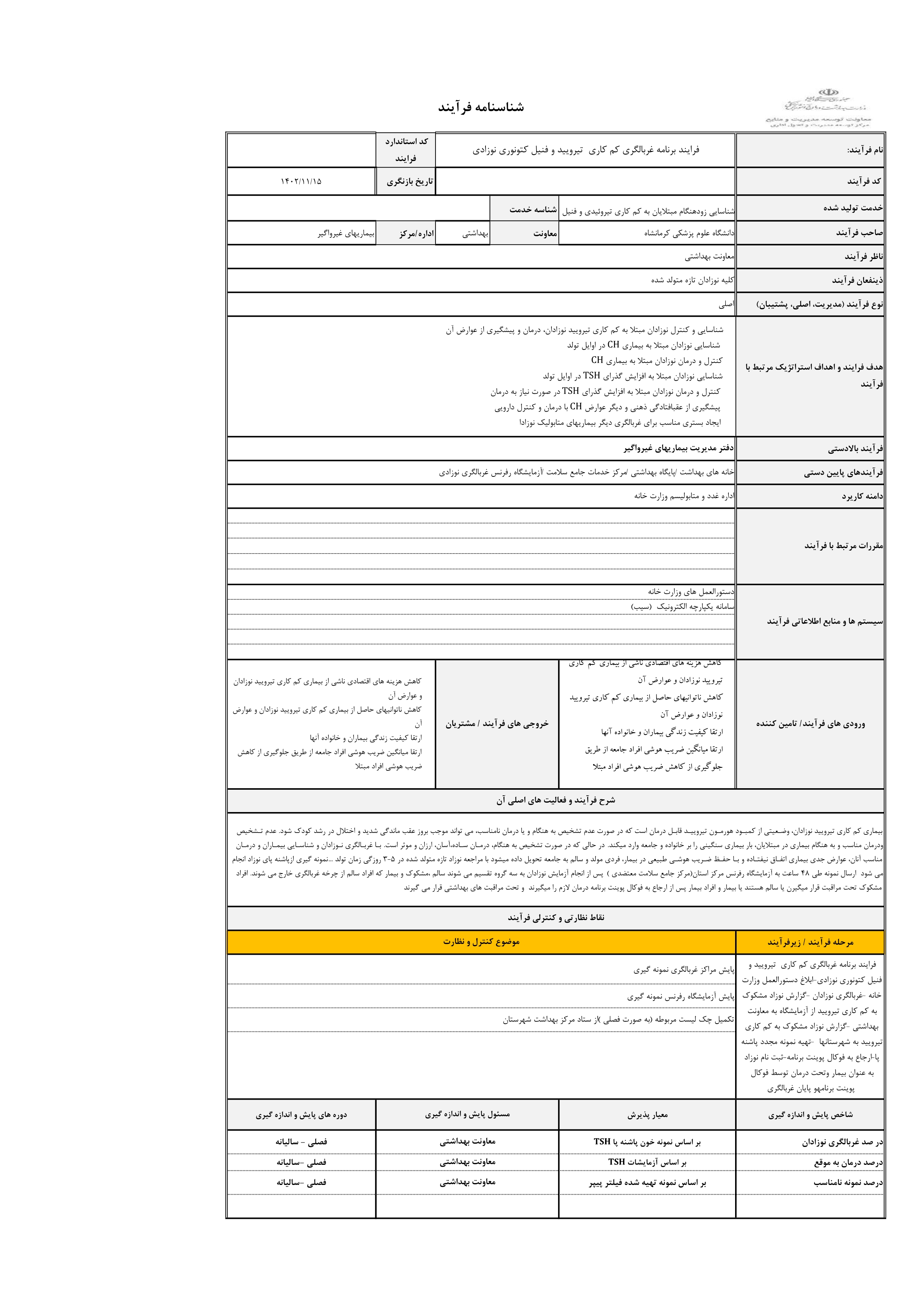 فرآیند برنامه غربالگری کم کاری تیرویید
