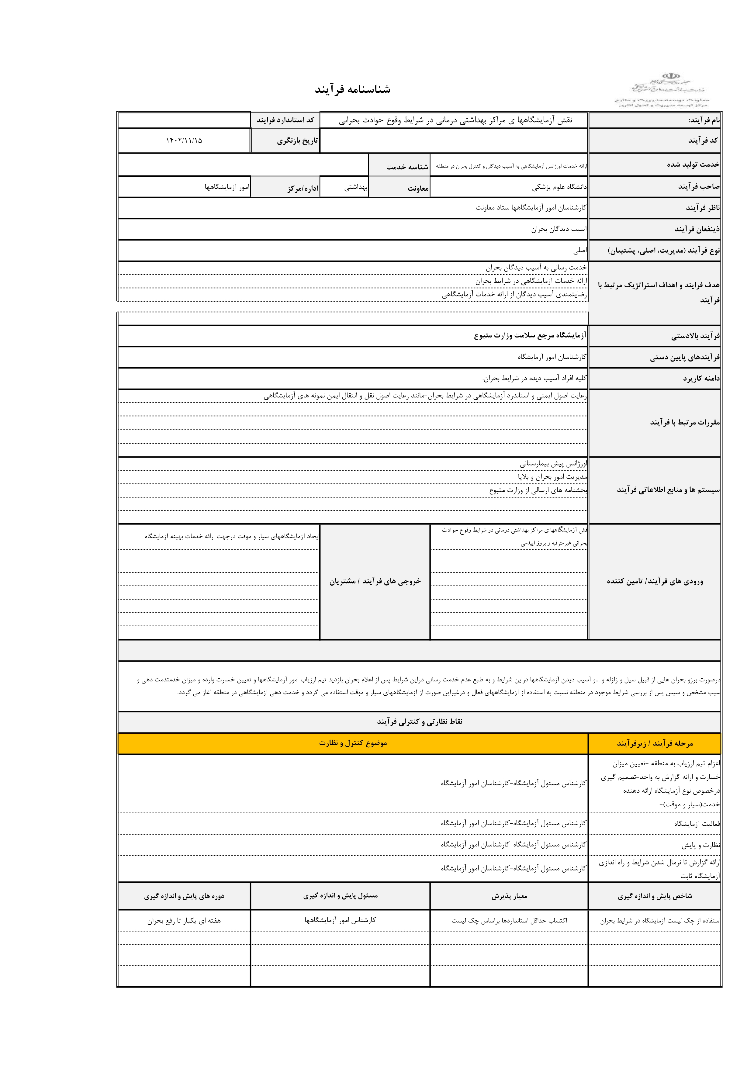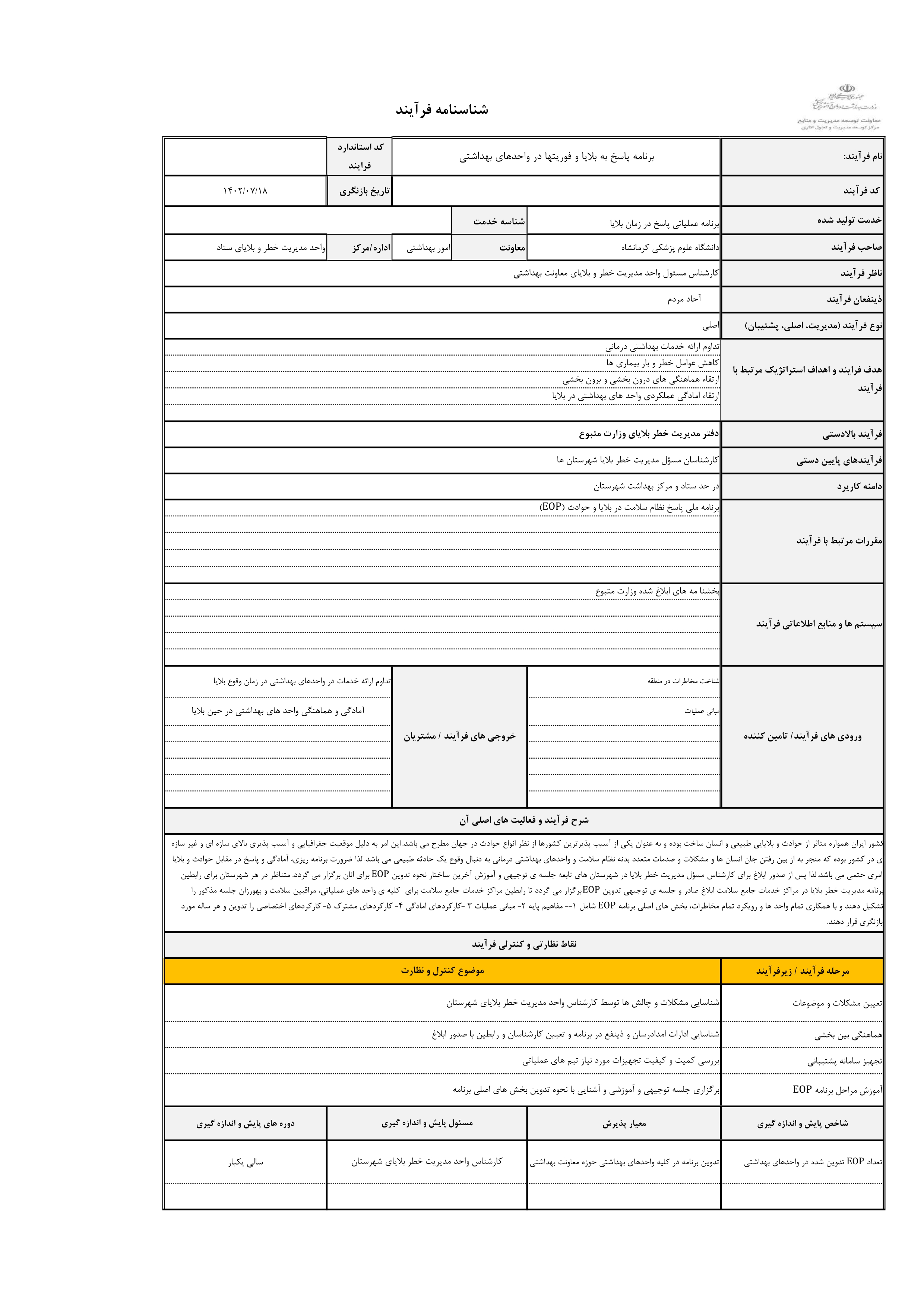 فرآیند برنامه پاسخ به بلایا و فوریتها در واحدهای بهداشتی