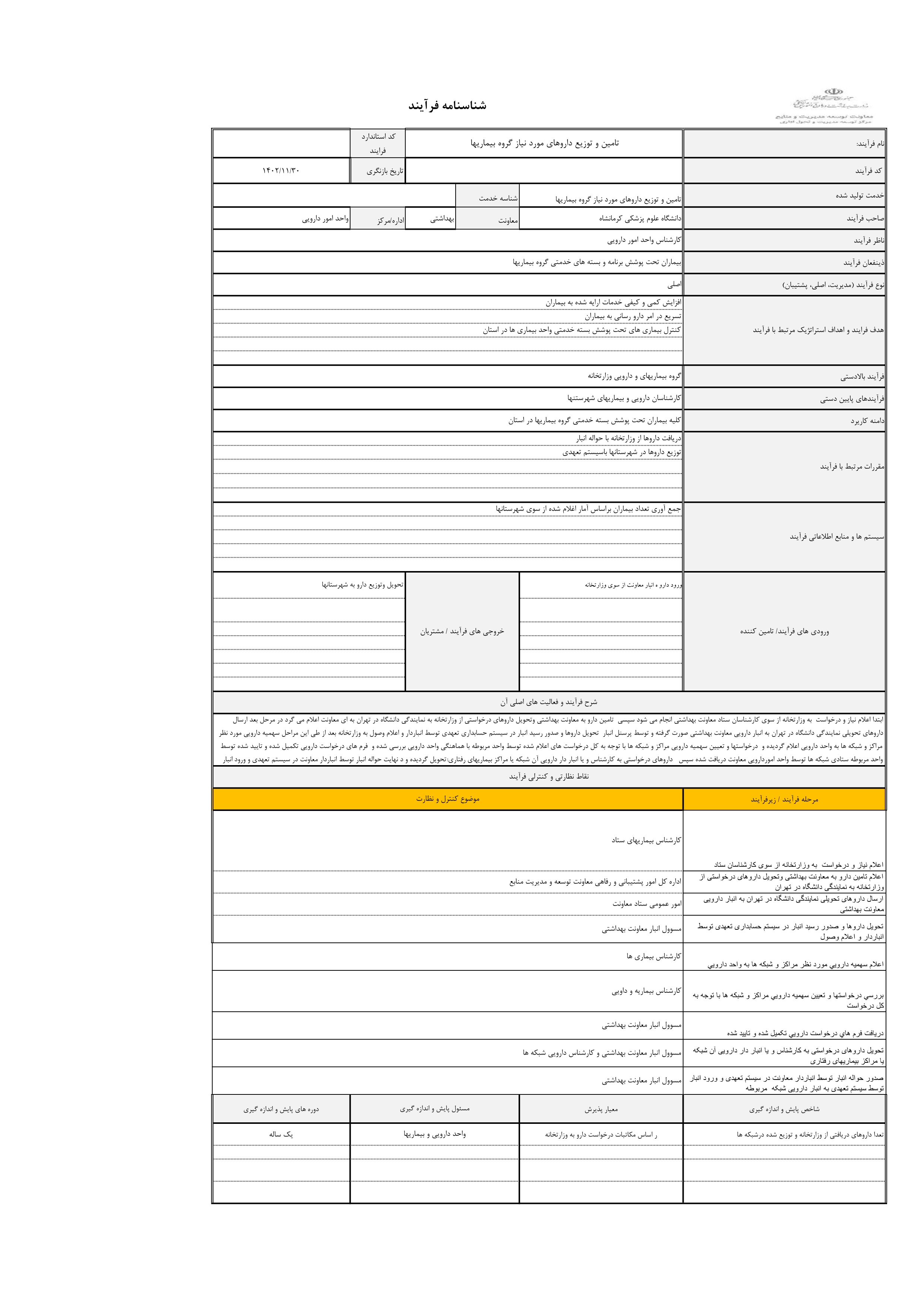 فرآیند تامین و توزیع داروهای مورد نیاز گروه بیماریها