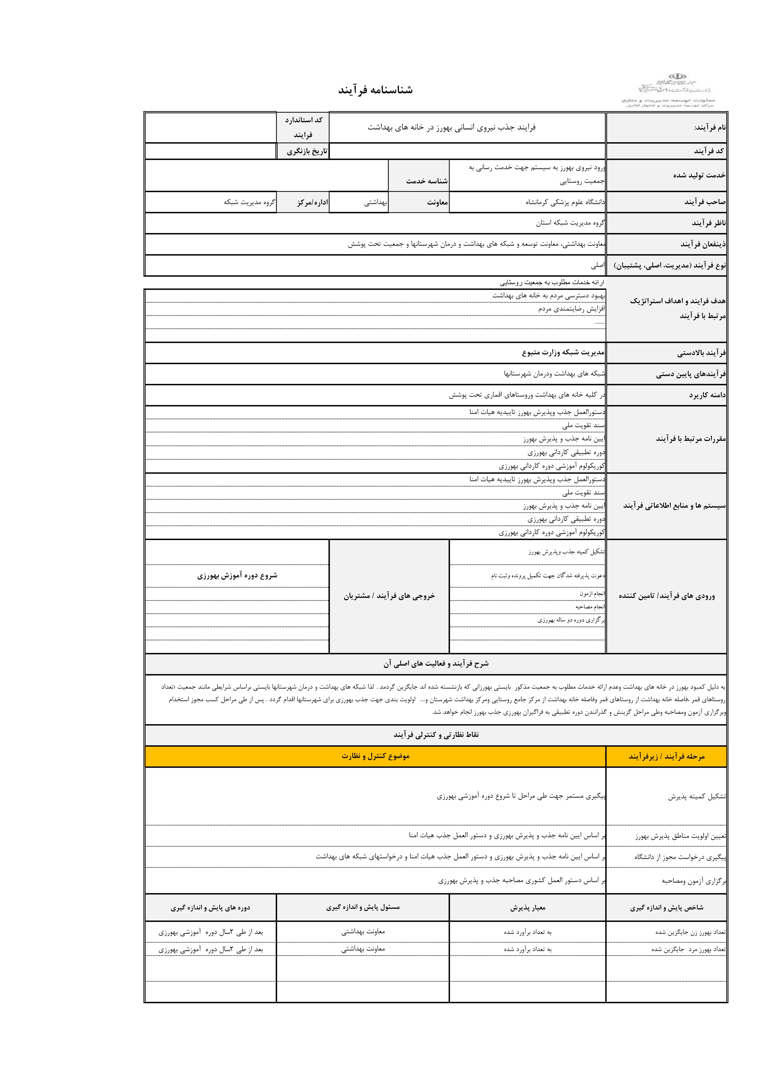 فرآیند اجرای برنامه نیاز سنجی سلامت جامعه