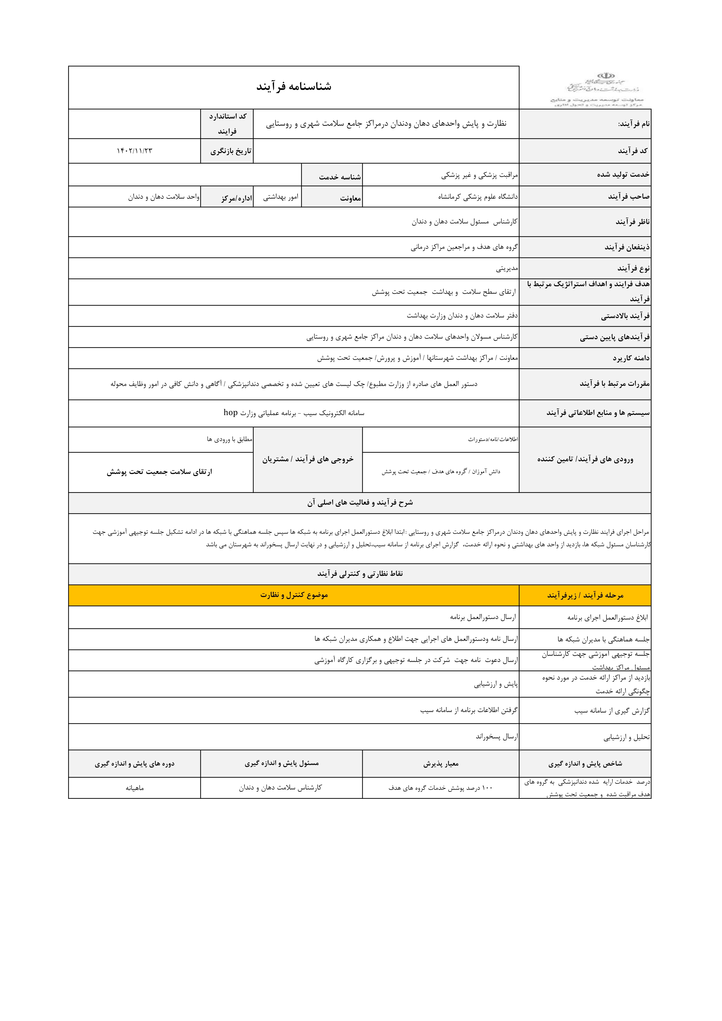 فرآیند نظارت و پایش واحدهای دهان و دندان
